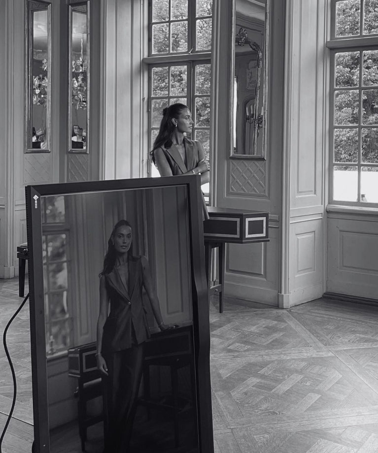 The Noem Edit is sculpted in polished gold or silver, its hammered surface catching and bending light in shifting patterns. The wide silhouette doesn’t demand attention — it holds it....